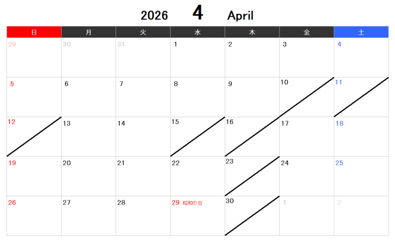 4月のお休みのお知らせです。